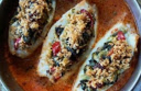 Greens Stuffed Haddock Wallets in a Sherry Pomodoro Sauce
