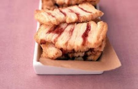 These impressive treats are easy to make and require only three simple ingredients: raspberry jam, sugar, and ready-made puff pastry.