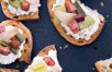 Ricotta Crostini with Pickled Ramps and Crisp Pancetta