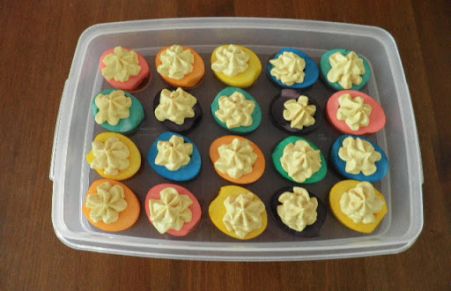 Color the whites of hard-boiled eggs to make the most festive Easter-themed deviled eggs ever! Fun for any party with a color theme! (Team colors, anyone?)