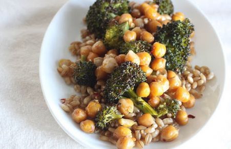 Oven-Roasted Chickpeas and Broccoli with Barley