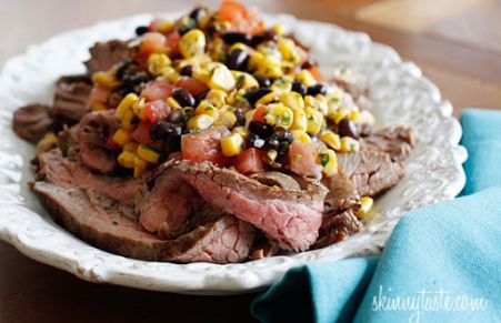 Grilled Flank Steak with Black Beans Corn and Tomatoes
