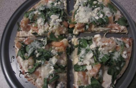 Shrimp, Feta and Spinach Pizza
