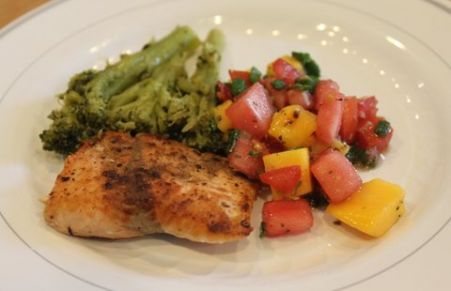 Salmon with Mango Chutney and Broccoli