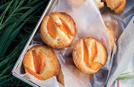 Muffin cups are the perfect size for these little apricot cakes. Topped with fresh apricots and raw sugar, you can make these sweets a day ahead.