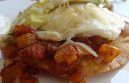 Tostada de Chorizo con Huevo Find all the pictures we have received for this Tostada de Chorizo con Huevo recipe. You can also send us your own pictures for this recipe by clicking on the link below. Pictures Photo sent the 06/19/2013 by á-36419. Recipe Print Comments Photos Send this recipe to friends Send a picture of this recipe