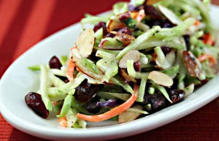 Broccoli Slaw Salad with Cranberries, Almonds and Yogurt Dressing