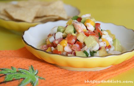 This is not a true ceviche since the seafood is poached instead of being 'cooked' in an acid but it's served in the same style and for the same occasions as classic ceviche