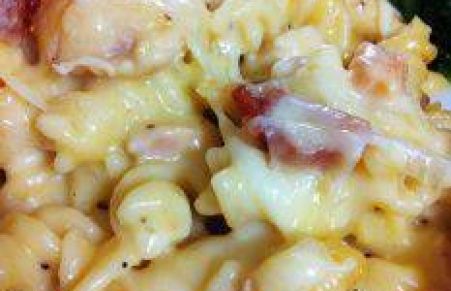 Easy to make with all of your families favorite foods - bacon, cheese, pasta and chicken! Toss in some broccoli or other veggies to make it a main meal dish.
