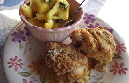 Oven Fried Chicken with Fresh Pineapple Side