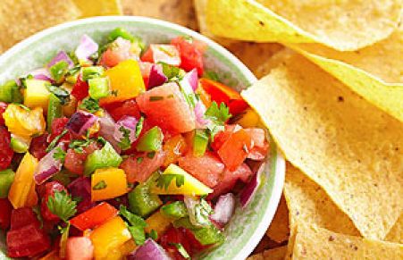 This salsa is bursting with the flavors of summer: mangoes, ripe tomatoes, sweet watermelon, jalapeños, and of course cilantro and lime.