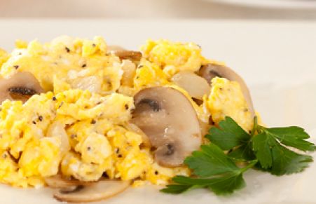 Start your morning right with these delicious, creamy scrambled eggs. Savory mushrooms compliment fragrant basil—simple and fresh.
