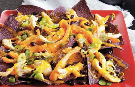 Halloween nachos can be made any day of the year, but the blue tortilla chips topped with orange cheese give these nachos the perfect colors for a Halloween party!