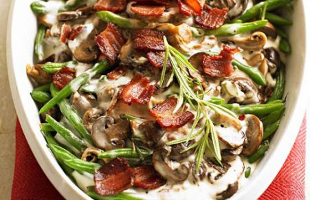 Add some more flavor to your green bean casserole with fresh mushrooms and bacon! Not only is this a great dish for Thanksgiving, you can have this anytime of the year.