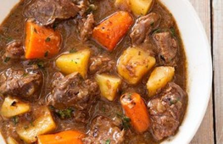 Rich and flavorful beef stew is made by slow cooking the meat and vegetables in a broth with Guinness Stout. Serve with homemade biscuits with honey butter.