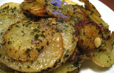 "Pommes de Terre Sarladaises are served often and everywhere in the Dordogne region of France. A 'hachis' of parsley and garlic is used in many dishes of the area. You can leave out the cèpes if necessary. 'Cèpes' are a naturally growing woodland mushroom much appreciated in France. You can buy bottled cèpes elsewhere in specialty stores."