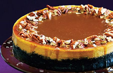 Pumpkin-Orange Cheesecake with Chocolate Crust & Salted Caramel