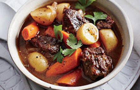 A traditional recipe for hearty beef stew with a base of onions and garlic, deglazed with brown ale, thickened with potatoes, and flavored with Dijon mustard & thyme.