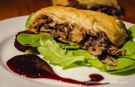 Mushroom Strudel with Berry Coulis