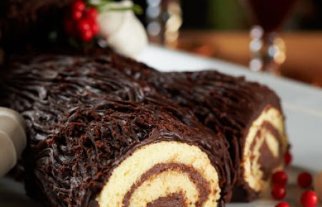 "Merry Christmas from France! This beautiful Yule Log will make your dessert table seem so much more festive than a typical chocolate cake.”—David