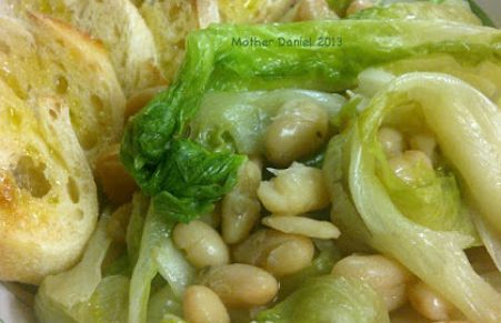 "Escarole always needs a good soak in cold water to rid it of the dirt trapped between its leaves. We wash it just before preparing this classic Italian dish so that the leaves still have water clinging to them when they are added to the skillet. This way, when they meet the warm oil they wilt gently instead of frying. Either of the smaller variety of dried white beans—navy or great Northern—work just as well as the more traditional cannellini here."- http://blog.thecanalhouse.com/category/recipes/