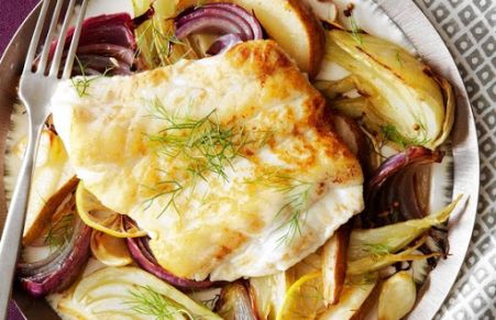 Pan Roast of Cod, Pears & Caramelized Fennel
