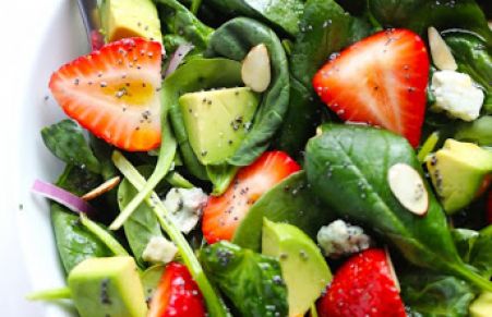 Avocado Strawberry Spinach Salad with Poppy Seed Dressing