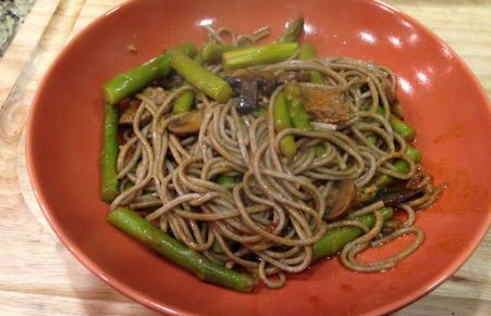 Soba Noodles with Beef, Asparagus and Mushrooms