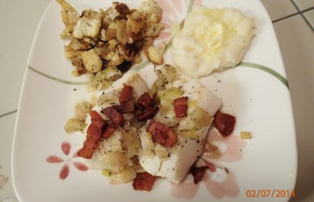 The mild flavor of the leeks and the smoky taste of the bacon makes this a wonderful fish dish.