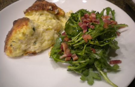 CHEESE SOUFFLE WITH BACON ARUGULA SALAD