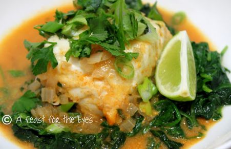 Thai Coconut Curry Halibut with Fresh Sauteed Spinach