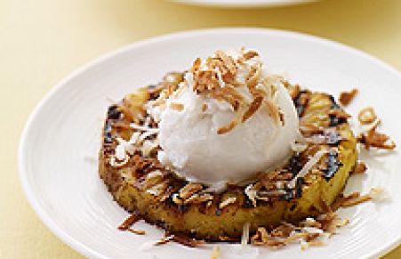Grilled pineapple with coconut sorbet is so sweet and satisfying. Just make sure the grill is super-clean before cooking the pineapple so that it doesn't pick up any flavors from your main course.