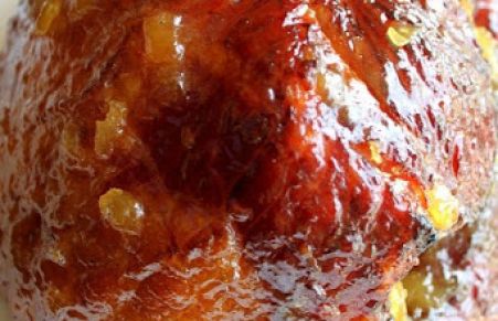 Make your own pineapple glaze for your spiral cut ham! I wanted to show how easy it is to turn a spiral cut bone-in ham into something that looks impressive, but isn't a whole lot of work. You see, the ham glaze packet, that comes with a spiral cut cooked ham doesn't do much for me. Have you read the ingredients listings? Yikes! I improvised making my own glaze, using pineapple jam (which I made myself), brown sugar and Dijon mustard. I was surprised at how good this turned out, and with the drippings I actually made a beautiful gravy to pour over the ham slices.
