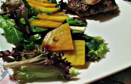 My first time cooking golden beets, I thought I'd keep it simple with a Roasted Golden Beet Salad. Simple has proven to be the best approach in my kitchen!