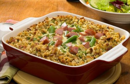 This stuffing recipe is like enjoying your green bean casserole & sausage stuffing all in one! Also serves as a hearty dinner, with the kielbasa sausage included.