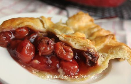 This is the first time I've made a cherry pie, with homemade cherry pie filling. I wish that Sour Cherries were available year round, but I used canned cherries in water. The pie crust is a Pate Brisee, which is a French version that uses all butter. I have made plenty of pies over the years, but this one-- according to my family (and they are honest critics)-- is the BEST pie I've made so far. I have to agree. The cherries were just the right balance of tart and the crust was so tender. Please click on the recipe source that links to my food blog "A Feast for the Eyes". You can see how I made this pie. You will love it! (Pie recipe slightly adapted from King Arthur Flour and the crust is from Martha Stewart)