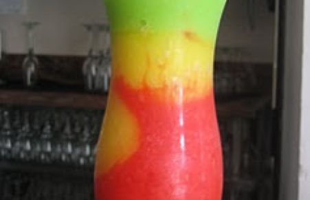 Be gentle pouring the layers in this glass to keep the colors separate for this Bob Marley Frozen drink.