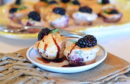 What I love about them is that they satisfy that sweet urge, and they’re really not that high in calories, so Blackberry and Fresh Basil Dessert Bites you can eat more than one and not feel guilty~~we need more of that during the holidays!