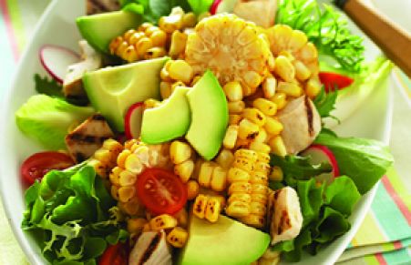 Spicy Roasted Corn, Avocado and Chicken Salad
