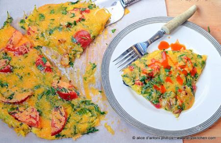 Broccoli Slaw Tomato Garlic & Chives Egg Skillet Pie