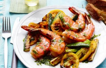 SHRIMP WITH CHARRED LEMON AND ZUCCHINI