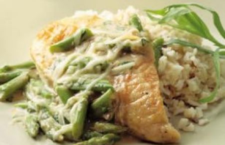 For this elegant dish, boneless chicken breast and asparagus are smothered in a luxurious white-wine sauce with just the right amount of melted Gruyère cheese. Tarragon and lemon add a delicious light flavor that is perfect with asparagus.