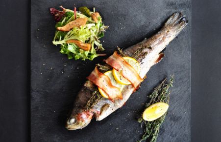 (Pancetta-wrapped trout recipe courtesy of Barney Desmazery)