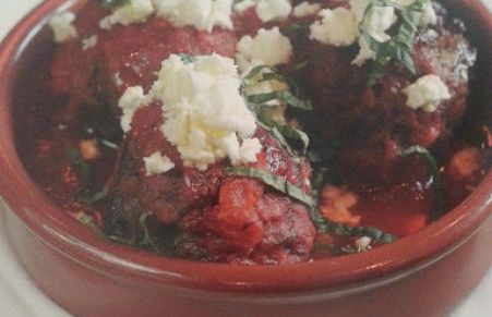 Lamb Meatballs with spiced tomato sauce, mint, and feta