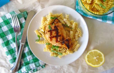 Lemon and basil marinated grilled chicken served with lemon cream pasta. Lemony, delicious and full of spring flavors! See my TastyKitchen recipe box for the Lemon Cream Pasta recipe.