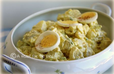 I've been making this classic American potato salad for many years, but have never written it out as a recipe. The salad dressing that I make includes classic ingredients, like mayonnaise, mustard and eggs. What's different about this recipe is that I cooked the potatoes and eggs in my pressure cooker, all together, at the same time-- in only four minutes! In one hour I had a delicious bowl of American Potato Salad. This is so easy! If you don't have a pressure cooker, no worries. Just cook the eggs and potatoes on the stove top the more traditional way. Pressure Cooker idea comes from the food blog "Pressure Cooking Today".