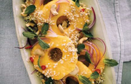 Quinoa isn’t just some hipster food, it’s actually incredibly nutritional and versatile. This delicious Summer Salad with nuts and pineapple uses sprouted quinoa which aids your digestive system and adds additional nutritional benefits.
