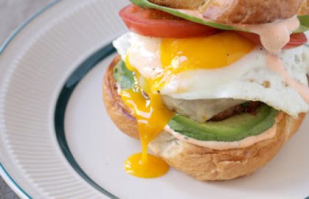 Pan-Fried Chorizo Burgers with Avocado, Fried Eggs and Spicy Mayo