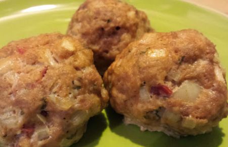 This meatball recipe is made with ground turkey and chicken and is incredibly flavorful. I served them with blue cheese macaroni, but they were also good just by themselves!