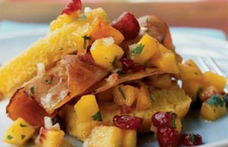 Corn Bread Shortcake with Ham & Fresh Peach Salsa
